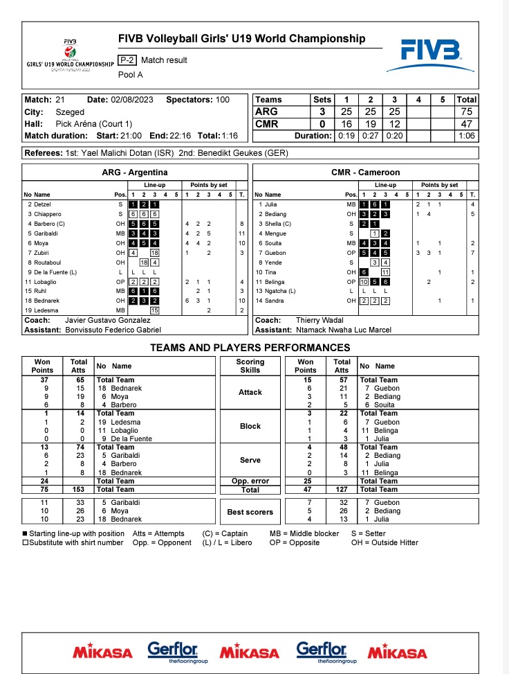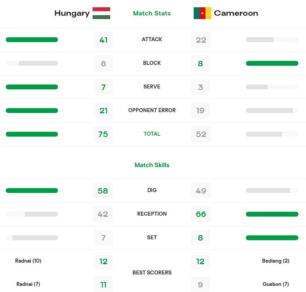 Les lionnes Indomptables perdent leur troisième match Face à la Hongrie, pays organisateur de la compétition sur le score sans appel de 0 set contre 3.