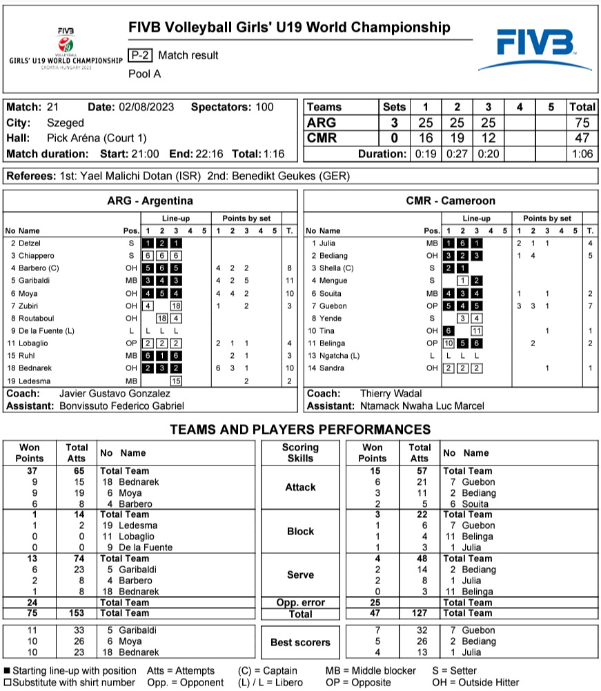 Les Lionnes affrontent la Hongrie, pays organisateur le mercredi 03 août 2023 à 17h (GMT + 1), Heure du Cameroun.